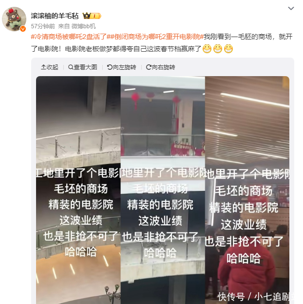 还有的地方,明明商场都倒闭了却因为《哪吒2》重新营业,到处冷冷清清就电影院人声鼎沸。