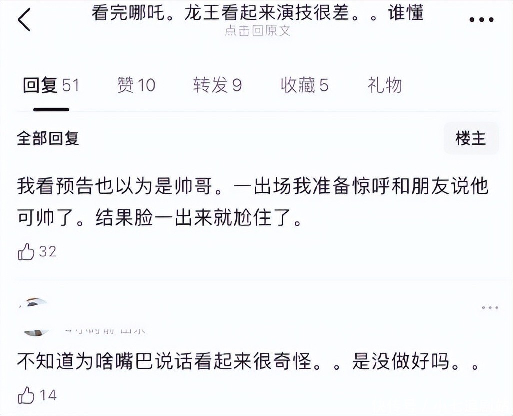 更有甚者吐槽龙王的演技很差,配音不好,还说他是照骗。有生之年能看到人吐槽动画角色演技差的,这真是太神奇了。